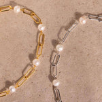 Freshwater Pearl Zircon Paperclip Bracelet